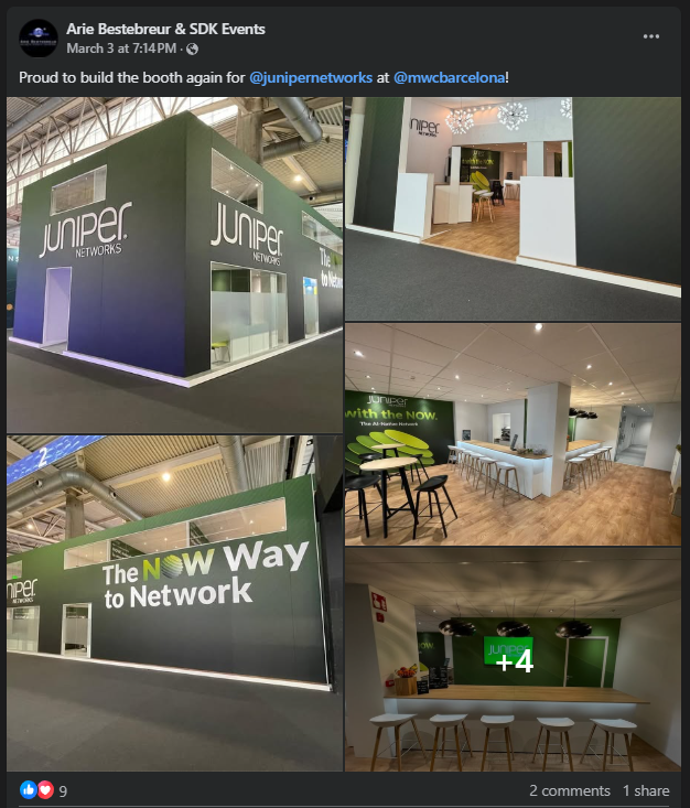 Als een gevestigde organisatie, met meer dan twee decennia ervaring, zijn wij ook voor u de juiste partner op het gebied van Standbouw, Interieurbouw, Events en Bedrijfspresentaties.